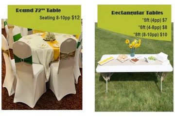 *Round tablecloth $10 * Rectangular tablecloth $10